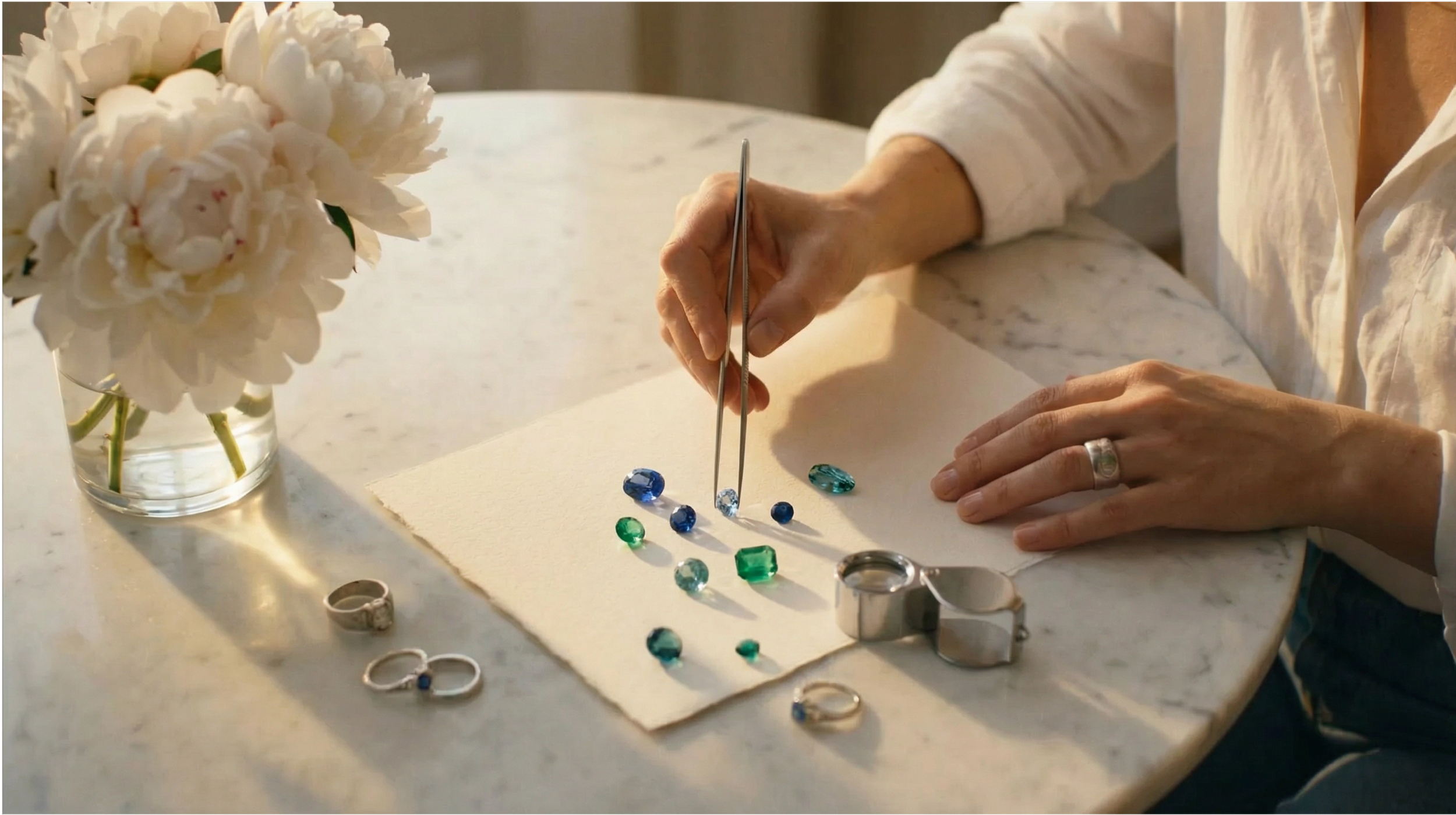 We offer a curated experience that includes you in the gemstone selection and design of your unique piece.